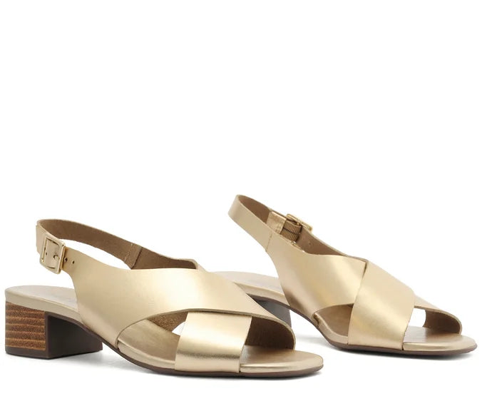 A Sandália Lídia Dourada é a união perfeita entre sofisticação e conforto. Com tiras cruzadas em couro legítimo e acabamento dourado delicado, ela valoriza o visual com brilho na medida certa, trazendo elegância sem exageros.
