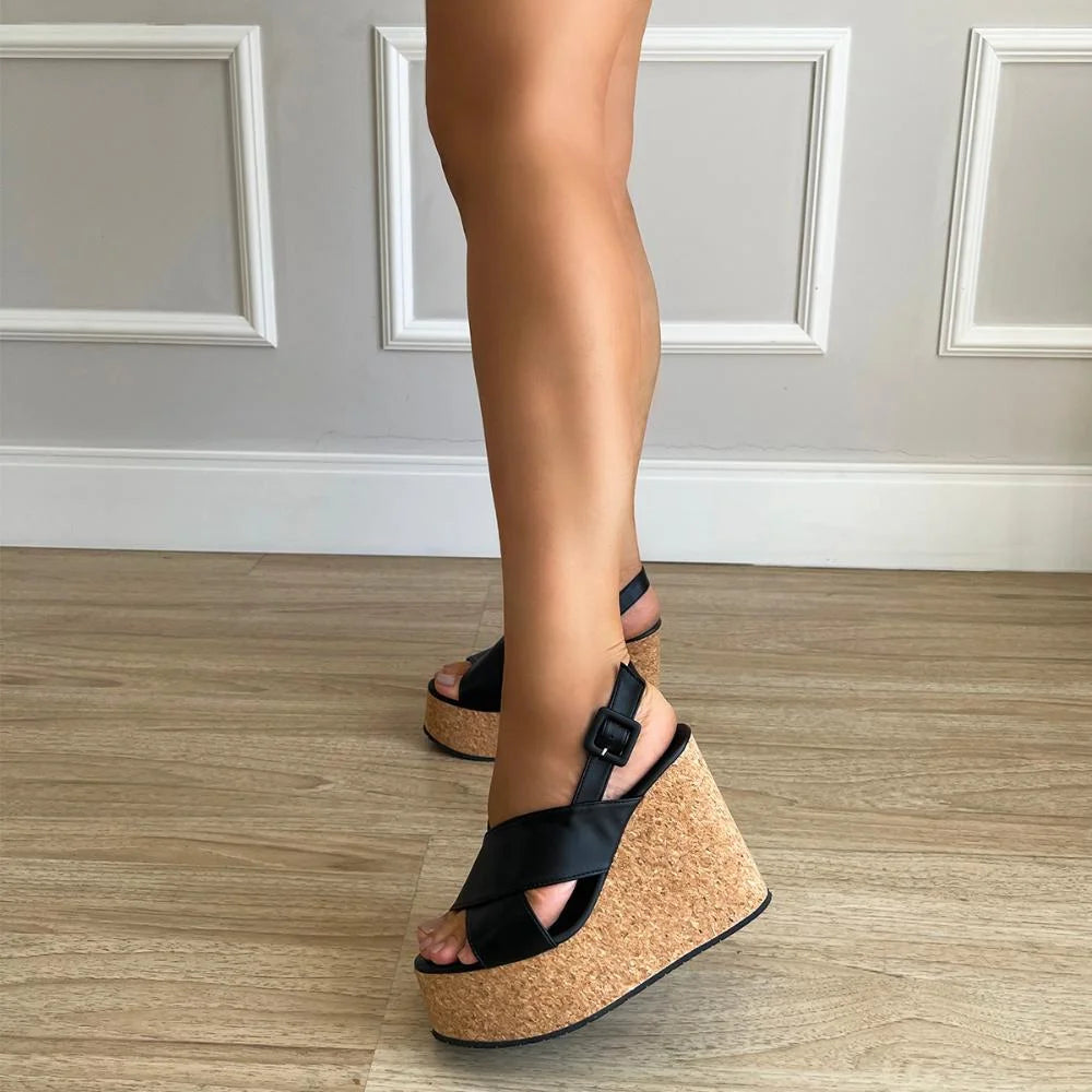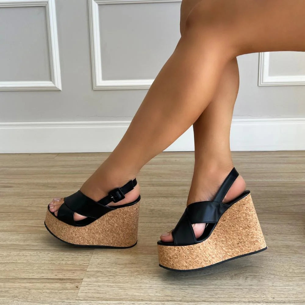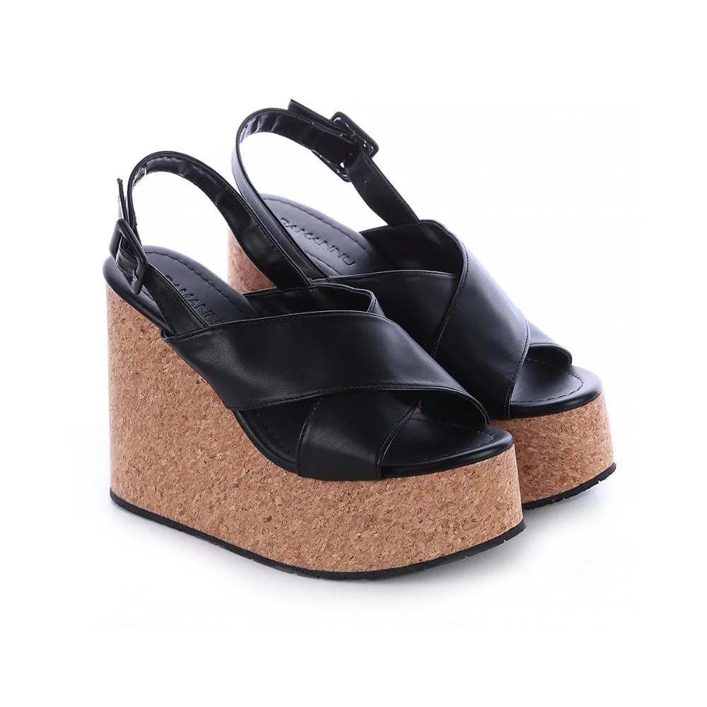 A Sandália Laise Preto é a escolha ideal para quem quer altura, presença e conforto absoluto no mesmo look. Seu salto plataforma em cortiça entrega imponência sem abrir mão da estabilidade, enquanto o design em tiras largas traz um visual moderno, elegante e extremamente versátil.